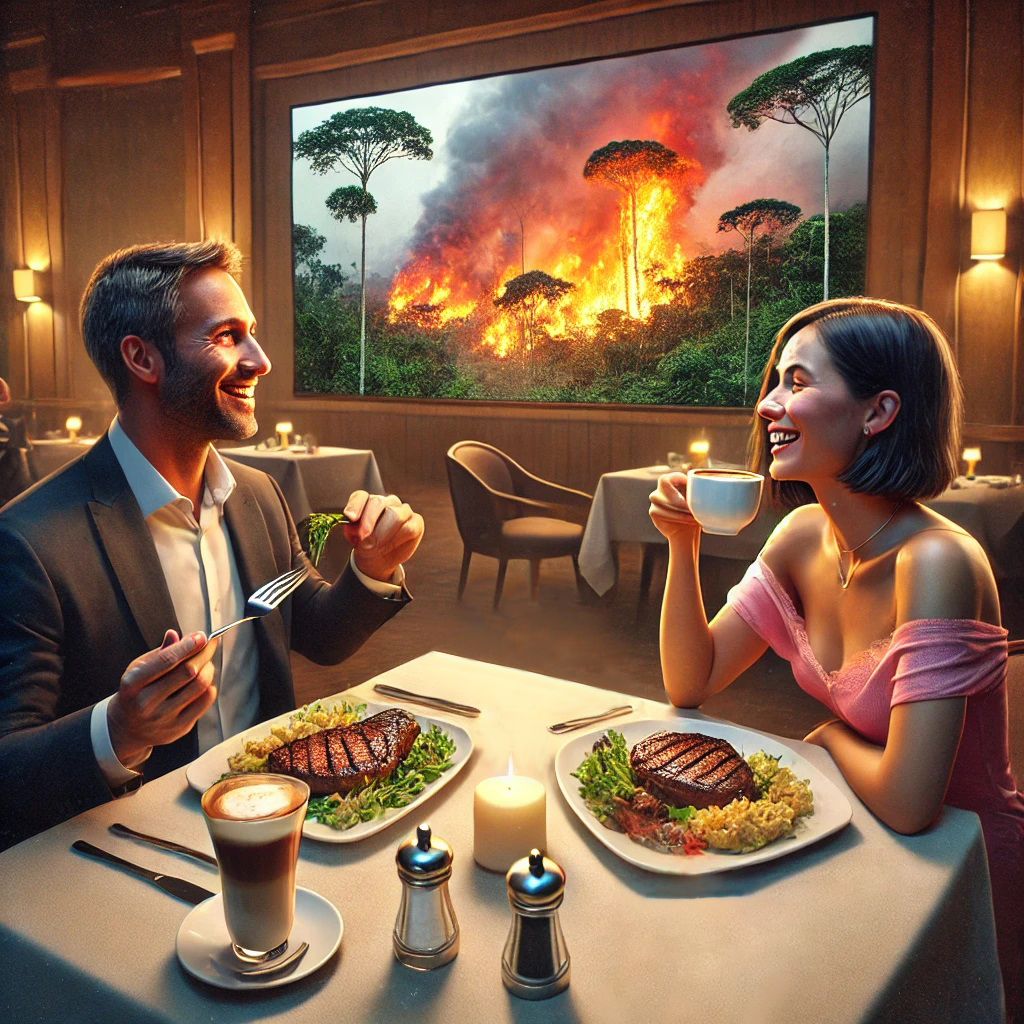 Seit Jahren wird der Amazonas systematisch abgeholzt und abgebrannt. Jahr für Jahr geht mehr Wald verloren. Und wofür? Für Rinderweiden, Sojaplantagen, Bodenschätze und edles Tropenholz. Rund 80 Prozent der zerstörten Flächen werden als Weideland genutzt. Schließlich braucht der globale Fleischhunger ein wenig Platz. Wer könnte auch ahnen, dass dafür jahrhundertealte Bäume weichen müssen? Auf den Restflächen wird Soja angebaut, damit die Massentierhaltung ordentlich bedient werden kann – Europa, die USA und China sagen Danke.