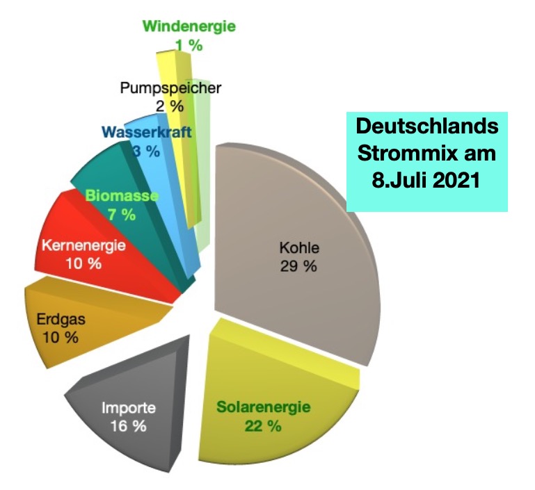 Bild: Strommix am 8.Juli 2021 – morgen wird das wieder vollkommen anders ausschauen