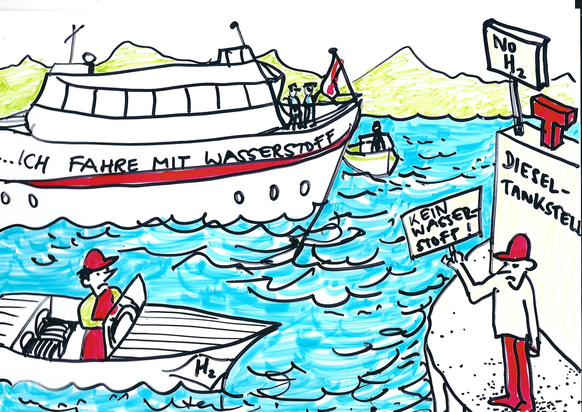 Da insbesondere auch die Schweizer Kurs-Schiffe oftmals längere Strecken zurücklegen müssen und deshalb längere Zeit unterwegs sind, stößt die Ausrüstung mit Batterien, die dann viel schwerer und größer sein müssten, an ihre Grenzen. Hier denkt man vor allem über den Einsatz von Brennstoffzellen in den Passagierschiffen nach. Allerdings hängt auch das von der Lösung eines Grundproblems ab, das bereits für den verzögerten Hochlauf im LKW- und PKW-Bereich verantwortlich ist: Es muss ausreichend Wasserstofftankstellen an Land geben, um die Schiffe respektive die „Landfahrzeuge“ auch wieder volltanken zu können.