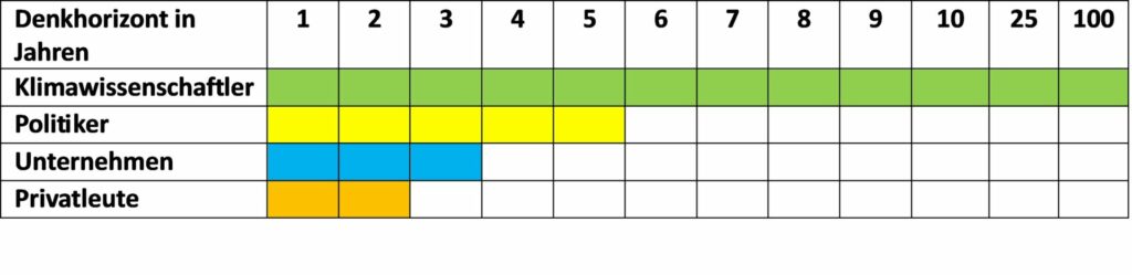 Unsere Politiker wiederum versuchen für ihr Land und sich selbst das Beste herauszuholen. Sie verhandeln darüber, welche Szenarien für ihre Wirtschaft, ihren Wahlerfolg oder ihr Privatvermögen das gewünschte Ergebnis bringen – je nachdem, ob demokratisch gewählt oder autokratisch im Amt. Ihr Planungshorizont reicht jedoch nur so lange wie ihre Amtsperiode dauert. Also für die Mehrheit der Politiker nicht länger als fünf Jahre.