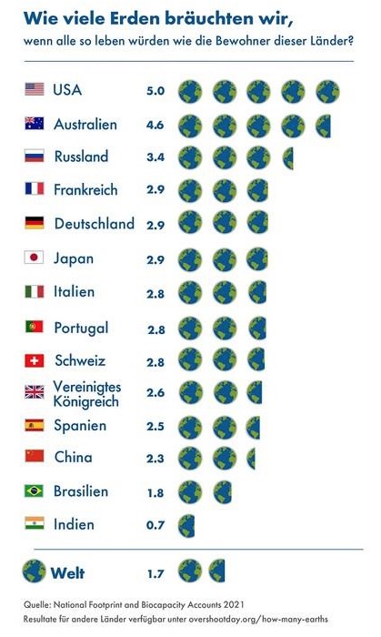 Das heißt, dass die natürlichen Ressourcen, die uns eigentlich zur Verfügung stehen, ab jetzt wieder aufgebraucht sind. Beinahe dreimal soviel Land wäre nämlich für uns in Deutschland nötig, um unseren momentanen Bedarf zu decken. Insofern passt der gerne benutzte Vergleich sehr gut: Unser Bankkonto ist zwar ins Minus gerutscht, doch wir heben ziemlich unbekümmert und weiterhin fleißig Geld ab, verlassen uns aber gleichzeitig darauf, dass dies irgendwann schon jemand bezahlen wird – vermutlich unsere Kinder und Enkelkinder. Ein Glück, dass sich jetzt bei denen Widerstand regt und ihre Forderung eindeutig und laut ist: Hört endlich auf, auf unsere Kosten zu leben!