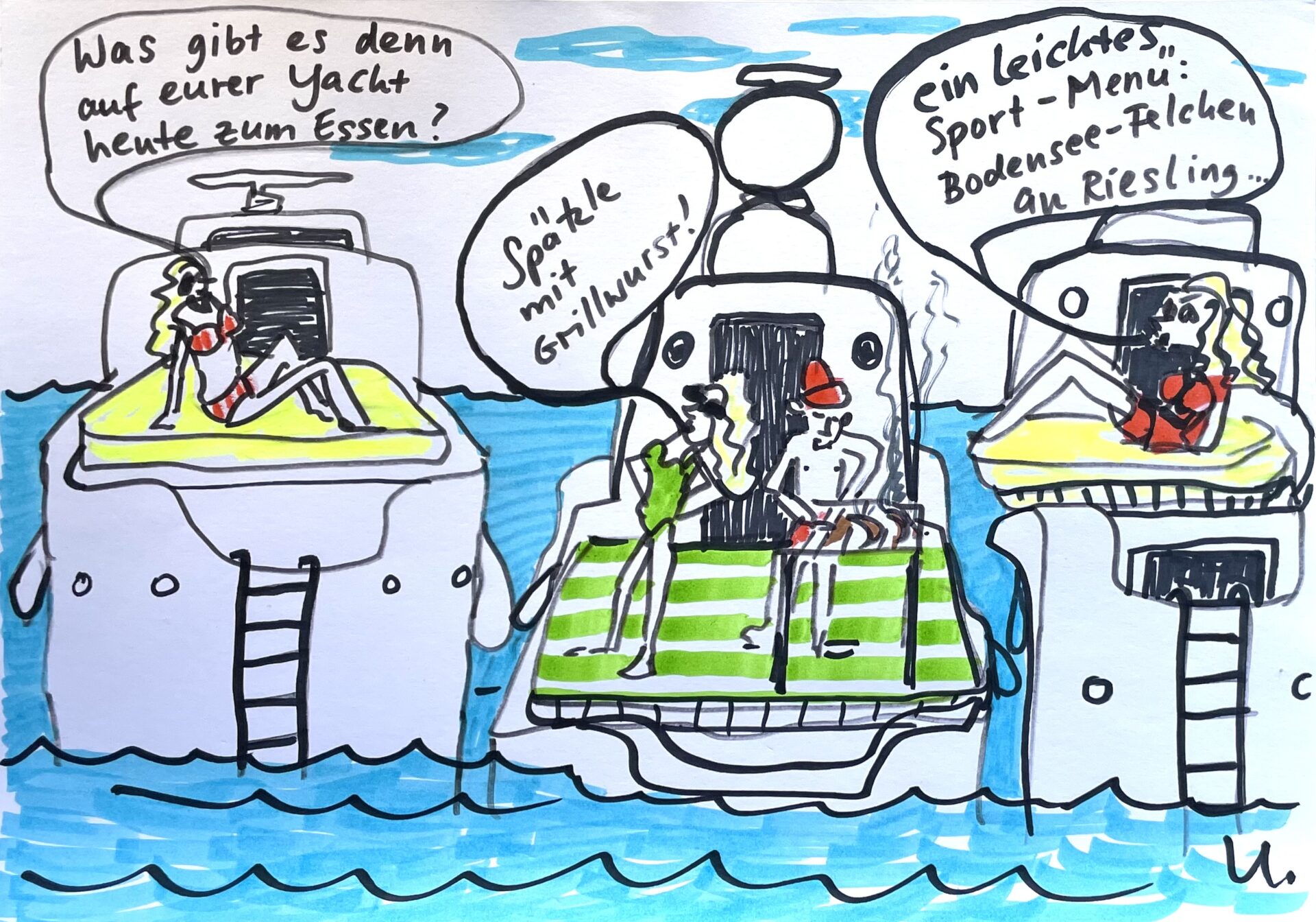 Die wesentliche Nutzung der großen Wassersportfahrzeuge am Bodensee konzentriert sich auf das Wohnen und Baden.