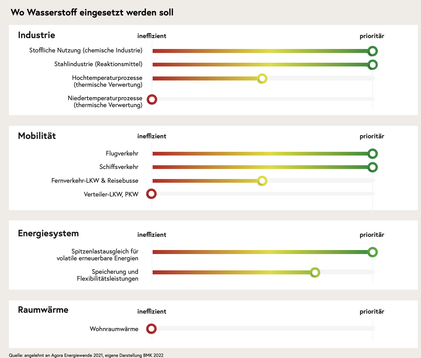 Die kurze Zusammenfasssung: die Chemie- und Stahlindustrie braucht unbedingt Wasserstoff, der Straßenverkehr – ob PKW, LKW oder Busse – eigentlich nicht.