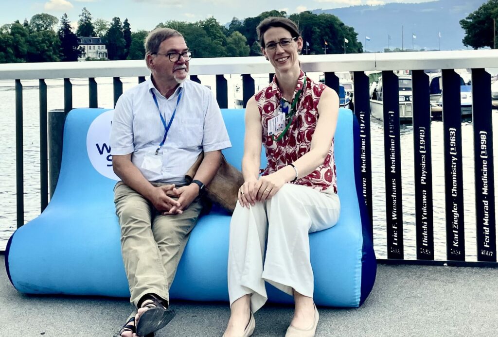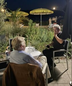 Wir nutzen trotzdem die Zeit für Nachbesprechungen zur „Woche des Wasserstoffs Süd“ und der Zusammenarbeit mit der Nobelpreisträgertagung (im Bild: Nikolaus Turner von der Tagungsleitung mit Werner Tillmetz). Die Oberbürgermeisterin von Lindau war begeistert von unseren vielen, erfolgreichen Veranstaltungen und möchte gerne das Thema High-Tech am See weiter ausbauen.