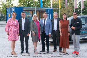 Dornbirn ist auch eine bekannte Messestadt. Die W3-Fair Convention, eine Netzwerkmesse für Optik, Elektronik und Mechanik mit rund 150 regionalen und überregionalen Ausstellern, zeigt sehr eindrücklich die Qualitäten dieser High-Tech-Region am Bodensee. Der umgebaute aFuel-Tesla der Firma Obrist im Eingangsbereich stand symbolisch für künftig neue Themen in der Region. Zusammen mit Thorsten Rixmann (zweiter von links), dem Director Marketing & Communications, gab es interessante Gespräche und Begegnungen, um auch das Thema Mobilität der Zukunft noch stärker in der Region zu verankern.