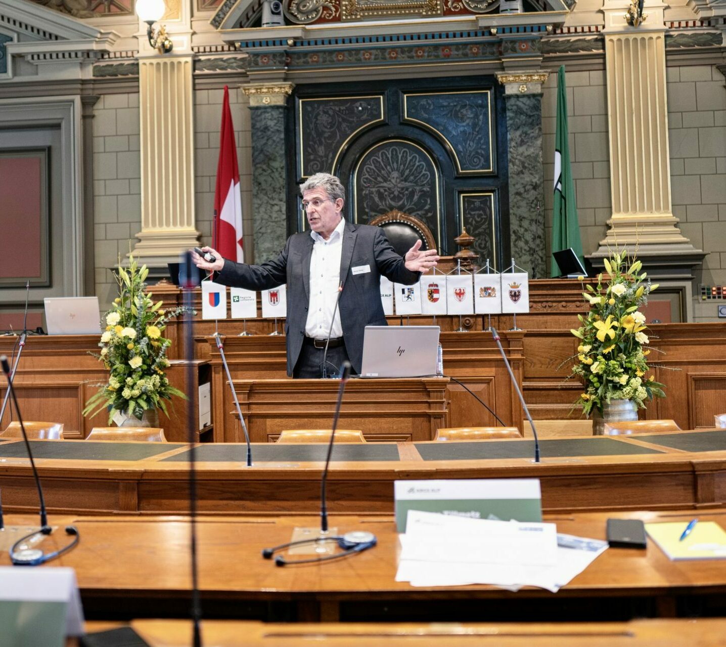 Werner Tillmetz beim Vortrag im Regierungsgebäude St.Gallen
