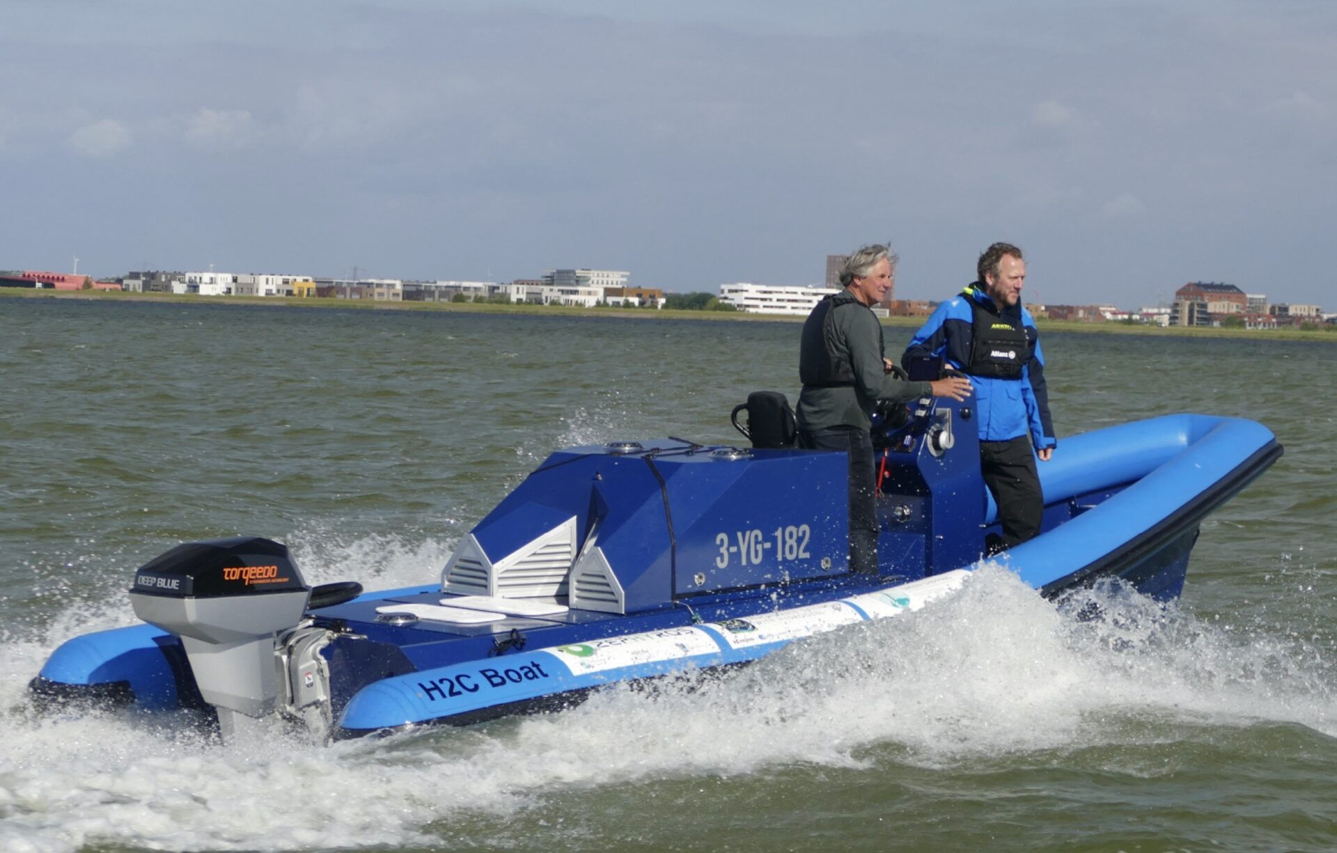Aktuell geht es um das sogenannte H2C Boat. Es wird von einer 40kWh DeepBlue-Batterie sowie einer zusätzlichen Wasserstoffkapazität von 51 kWh angetrieben. Die Wasserstoff-Brennstoffzelle dient als Reichweitenverlängerer und ermöglicht einen Betrieb von mindestens fünf Stunden auf dem Wasser. Das revolutionäre Boot mit einer Länge von sechs Metern und einer Höchstgeschwindigkeit von 45 km/h bietet eine leise und emissionsfreie Alternative zu herkömmlichen RIB-Booten (das sind Festrumpf-Schlauchboote).