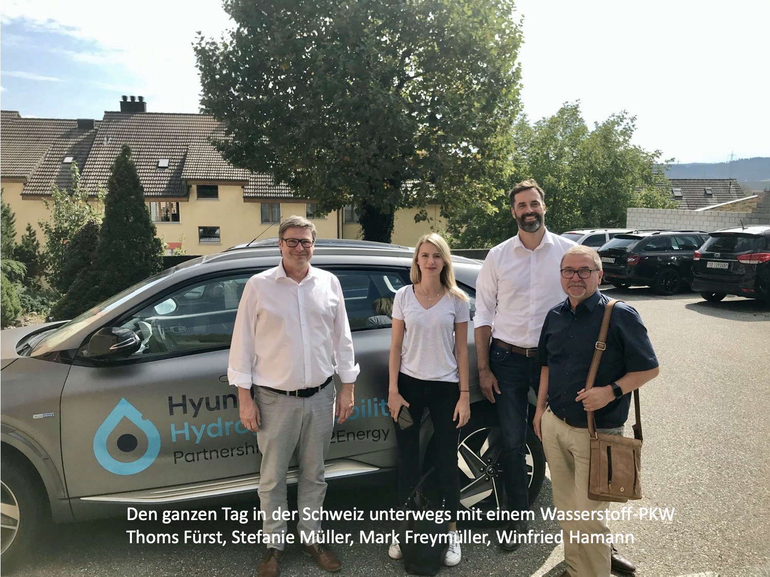 Walter Müller – Geschäftsführer der Spedition Max Müller in Opfenbach – will mittelfristig seinen Fuhrpark mit CO2-freien Fahrzeugen betreiben. Um an die wichtigen Informationen zu kommen, hat er mit Mark Freymüller (CEO von Hyundai LKW Schweiz) einen Informationstermin vereinbart. Hintergrund: Bis Ende 2020 werden von der H2 Mobility Schweiz insgesamt 50 LKW an 7 Partner übergeben, von denen Anfang Oktober bereits die ersten 7 ausgeliefert wurden. Die anhängende PDF-Datei zeigt Stationen des „Tagesausflugs“, zu denen wir natürlich mit einem „Nexo“, dem Brennstoffzellen-PKW von Hyundai, gebracht wurden. Insbesondere die Elektrolyse-Anlage und der Brennstoffzellen-LKW haben uns dabei besonders beeindruckt. Siehe Unterwegs in der Schweiz