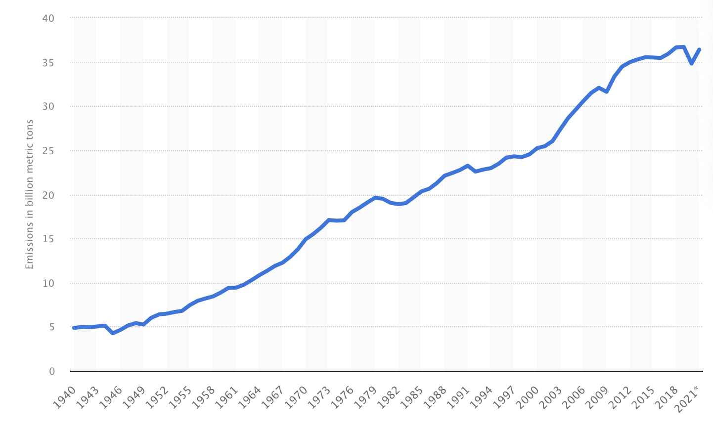 Grafik: Entwicklung der globalen CO2-Emissionen (Quelle: Statista)
