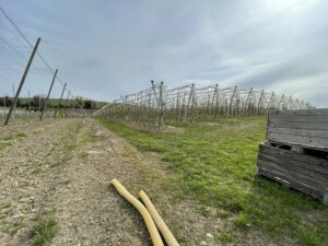 Seine Zuversicht, dass irgendwann all die Genehmigungen und Anträge für seine geplante Agri-Photovoltaik abgeschlossen sein würden, hat Hubert Bernhard auch bei unserem Besuch im April 2021 behalten – siehe Beitragsbild. Damals sah der dafür vorgesehene Platz noch so aus: