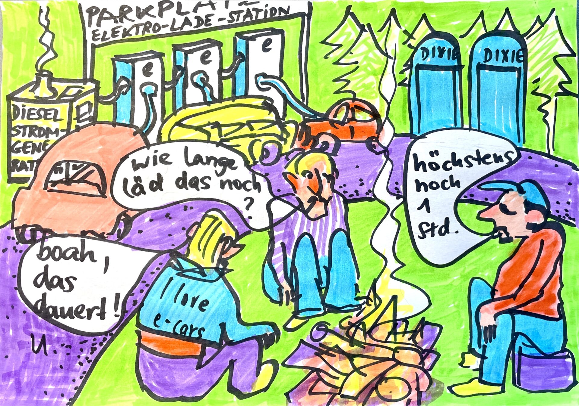 - Nachdem Schnellladen immer noch eine halbe, vielleicht auch eine Stunde dauert, wäre auch ein Minimum an Komfort angebracht. Mit Kaffeemaschine, Bistro und komfortablem Toiletten liese sich das Warten angenehmer und die E-Mobilität attraktiver gestalten.
