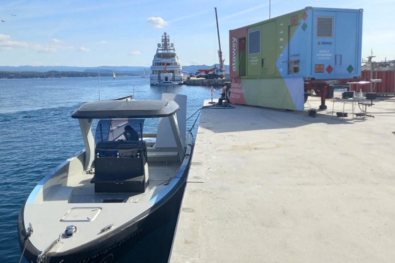 Die Firma Atawey stellt seit September 2022 eine mobile Wasserstoff Tankstelle im Hafen von La Ciotat bereit. Nun können auch die Schiffe der Firma Hynova dort direkt Wasserstoff tanken und die neue Technologie im Alltag demonstrieren.