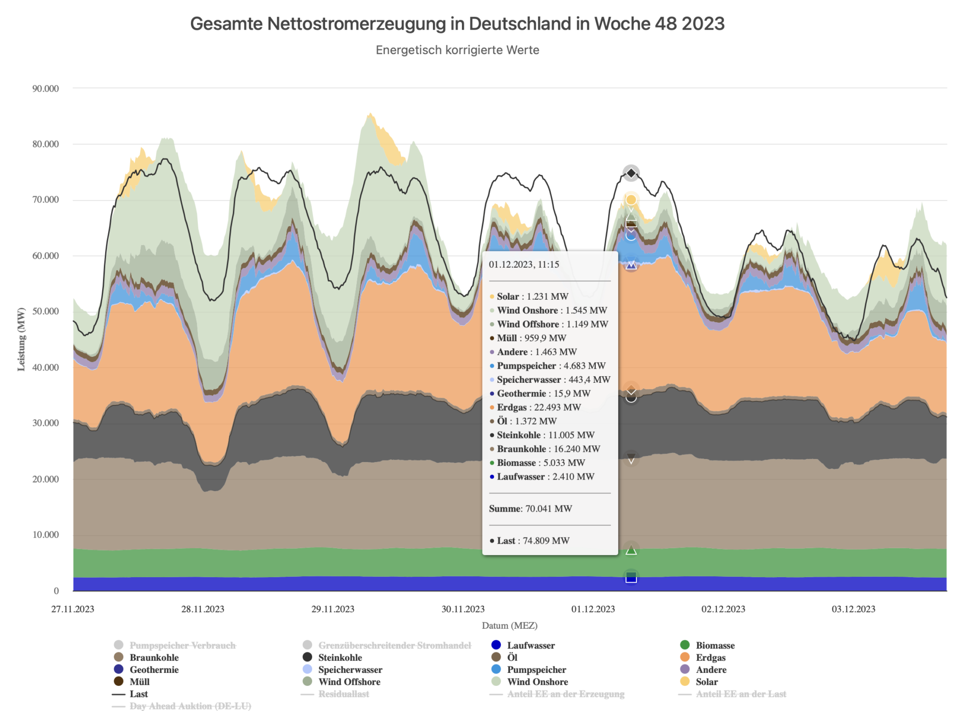 In der Grafik zur Stromerzeugung in Deutschland in der letzten Woche (energy-charts) wird das deutlich: