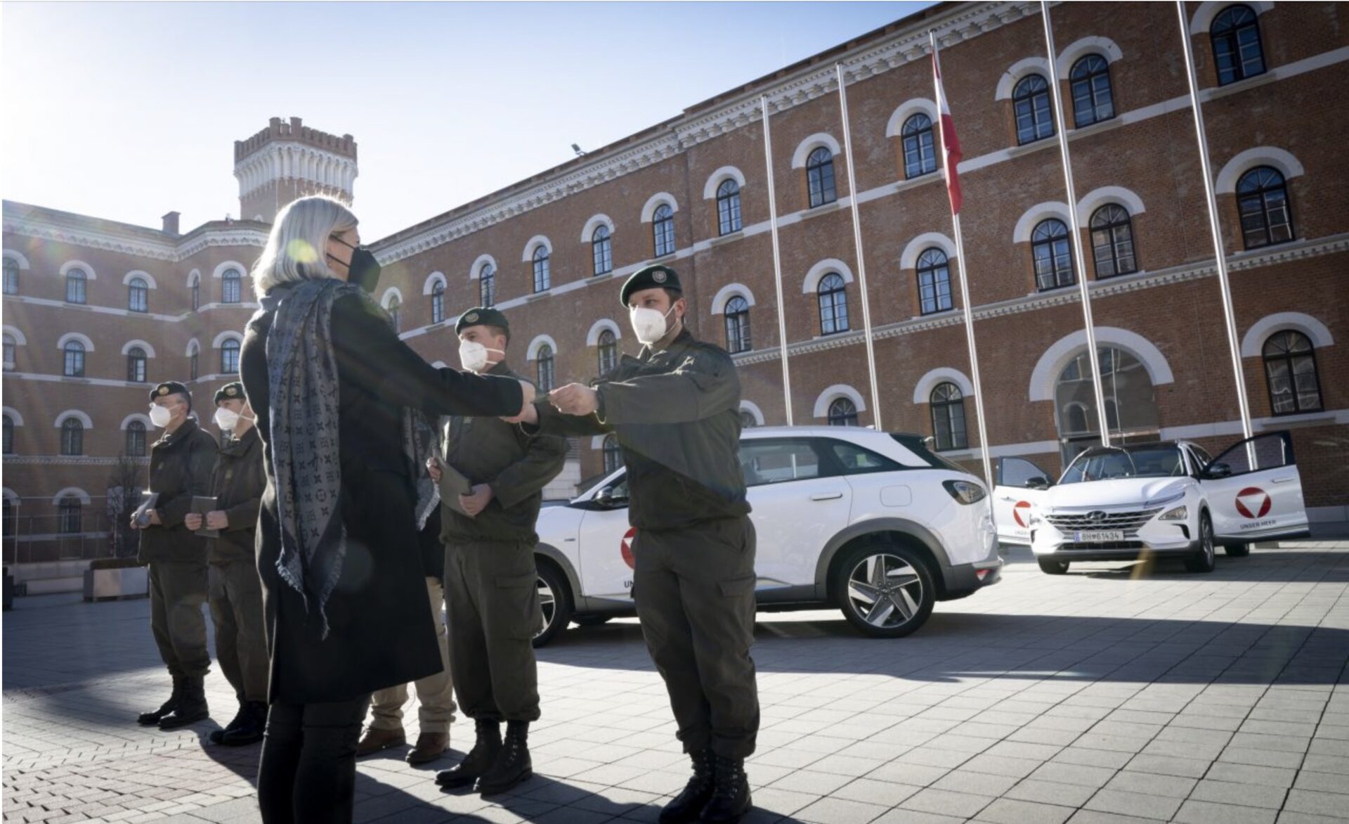 Die fünf Fahrzeuge von Hyundai, die nun in Wien, der Steiermark, in Oberösterreich und Tirol eingesetzt werden, sollen zunächst ihre Eignung im militärischen Verwaltungsalltag unter Beweis stellen. Doch schon jetzt schwärmen die Verantwortlichen von der großen Reichweite – fast 700 km! -, vor allem aber von der schnellen Betankung. Gerade sie kann ja bei einem unerwarteten Einsatz von entscheidender Bedeutung sein.
