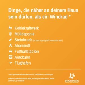 So aber ging es dann weiter: Denn 2 Jahre später wurde diese Absicht erst einmal in die berühmte 10 H-Regelung umgewandelt: Das heißt, der Abstand zur nächsten Wohnanlage muss seitdem mindestens 10mal so groß sein wie die Höhe des Windrades. Die sind aber meist höher als 120 Meter…Dazu passt vielleicht das nebenstehende Bild: